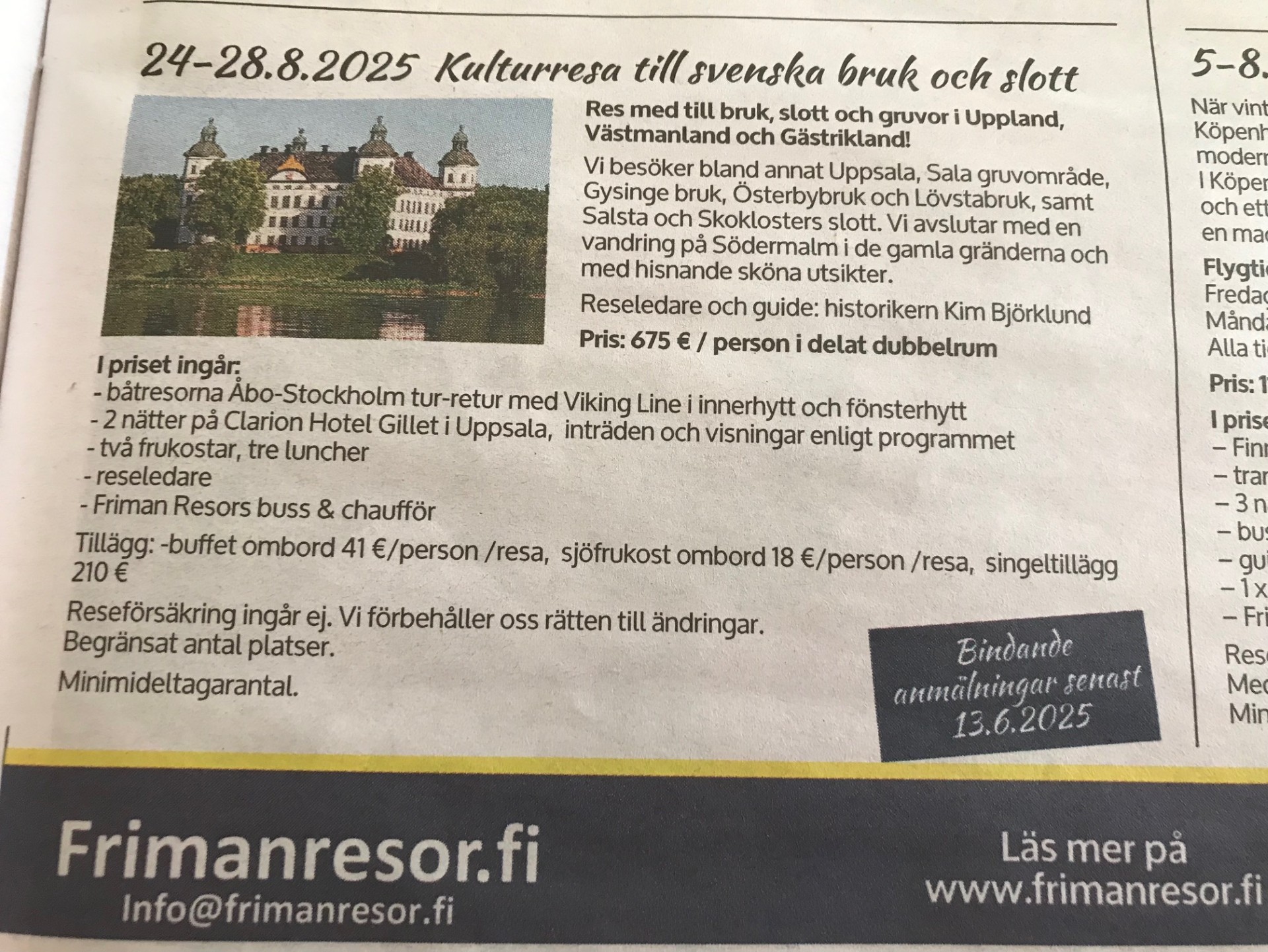 Ilmoitus Frimanresorin järjestämästä matkasta